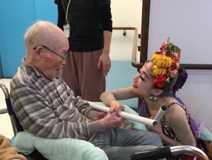 呼華の皆さんを食い入るように見るご利用者様は、