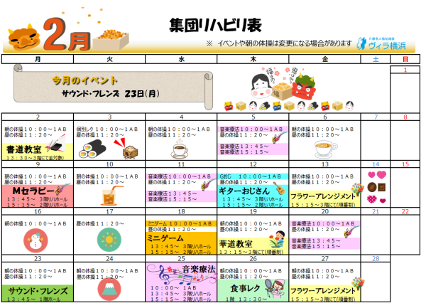 2月の行事予定を更新しました